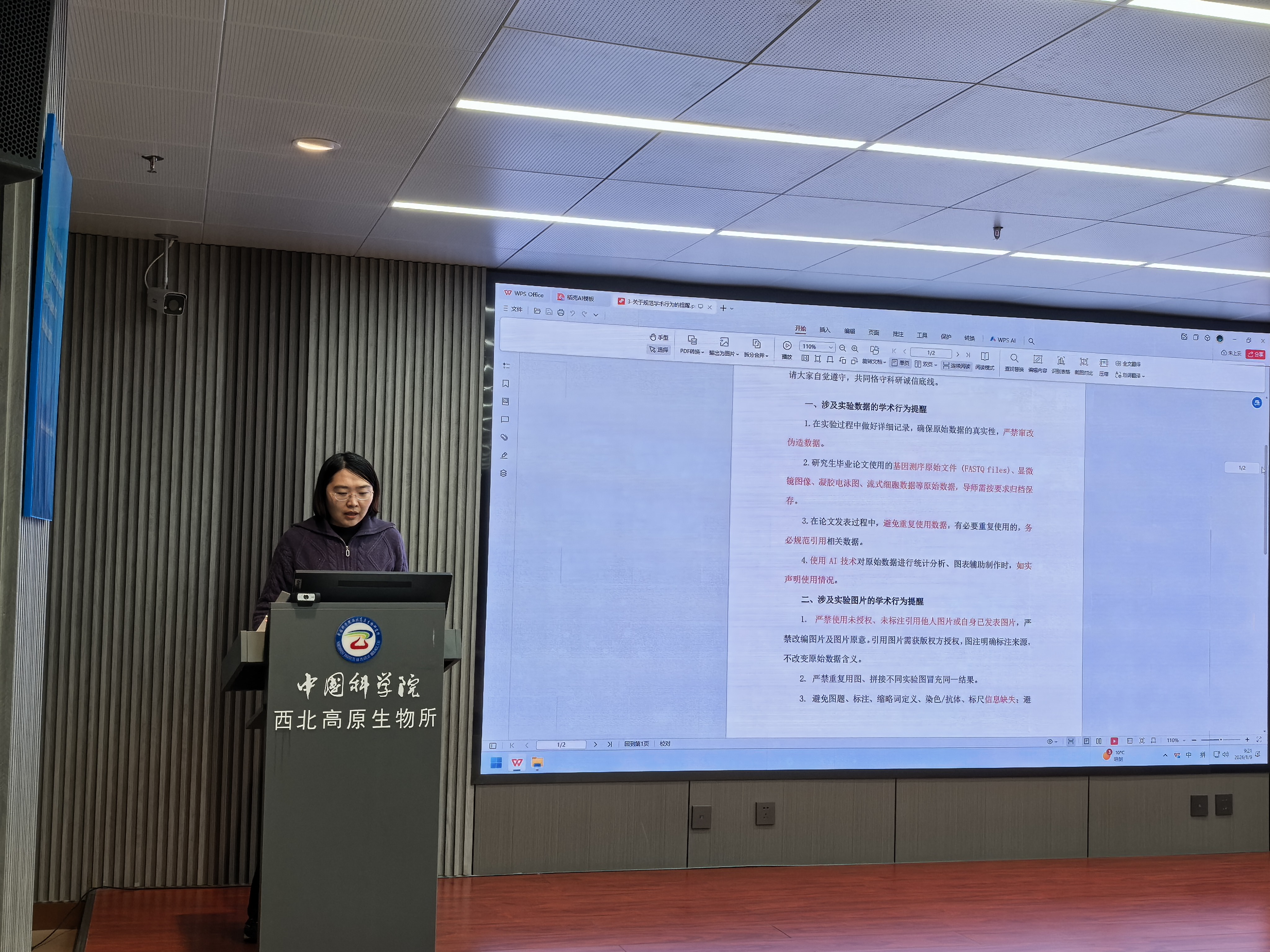隨后,組織委員兼紀(jì)檢委員李彩霞傳達(dá)學(xué)習(xí)了中國(guó)科學(xué)院西北高原生物所學(xué)術(shù)委員會(huì)《關(guān)于規(guī)范學(xué)術(shù)行為的提醒》,與會(huì)人員集體觀看了科研誠(chéng)信教育視頻《學(xué)術(shù)倫理:青年學(xué)者必須跨越的五條治學(xué)門檻》。